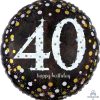 Anagram 18″ “40 Happy Birthday” Black Gold Silver Circle Foil Helium Balloon