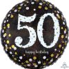Anagram 18″ “50 Happy Birthday” Black Gold Silver Circle Foil Helium Balloon