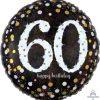 Anagram 18″ “60 Happy Birthday” Black Gold Silver Circle Foil Helium Balloon