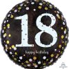 Anagram 18″ “18 Happy Birthday” Black Gold Silver Circle Foil Helium Balloon