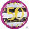 Anagram 18″ “50 Happy Birthday” Black Pink Gold Circle Foil Helium Balloon