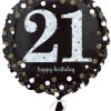 Anagram 18″ “21 Happy Birthday” Black Gold Silver Circle Foil Helium Balloon